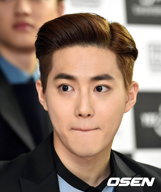 8일 그룹 엑소의 두 번째 단독콘서트가 열리기 전 벌어진 기자회견에서 엑소 수호가 귀여운 표정으로 취재진의 질문을 듣고 있다. 이탈한 크리스, 루한 없는 10인 멤버로서의 콘서트는 이번이 처음이다.