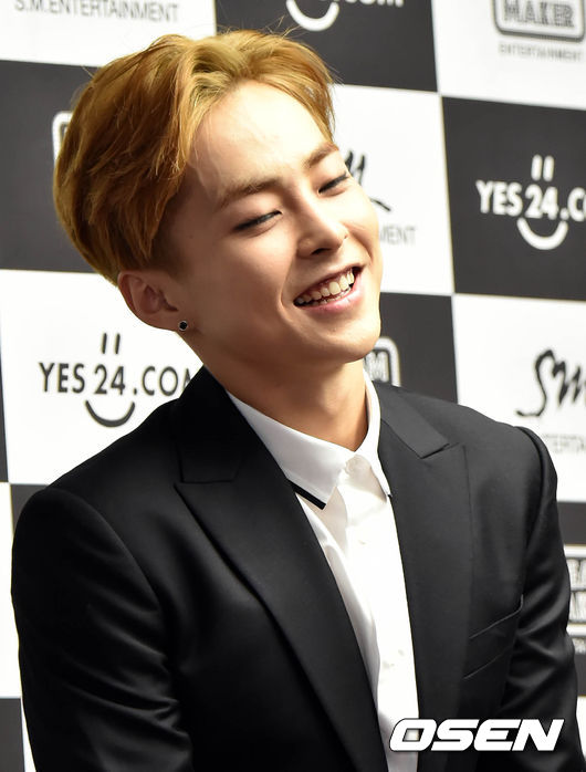 8일 그룹 엑소의 두 번째 단독콘서트가 열리기 전 벌어진 기자회견에서 엑소 시우민이 취재진의 질문을 듣고 있다. 이탈한 크리스, 루한 없는 10인 멤버로서의 콘서트는 이번이 처음이다.