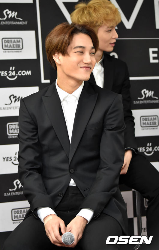 8일 그룹 엑소의 두 번째 단독콘서트가 열리기 전 벌어진 기자회견에서 엑소 카이가 취재진의 질문을 듣고 있다. 이탈한 크리스, 루한 없는 10인 멤버로서의 콘서트는 이번이 처음이다.