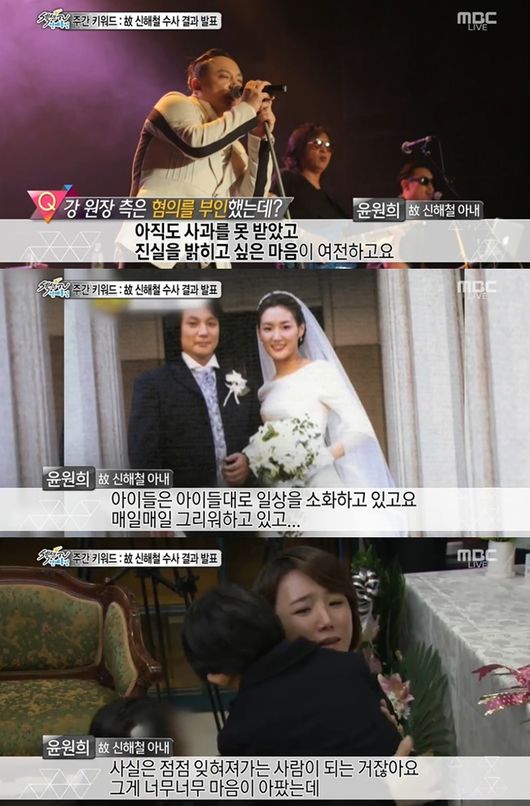 故신해철의 아내는 8일 오후 방송된 MBC ‘섹션 TV 연예통신’에서 “아이들이 매일매일 (아빠를) 그리워하고 있다”고 밝혔다.