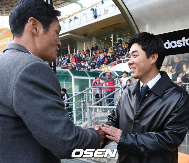 경기시작전 서울 최용수 감독과 울산 윤정환 감독이 인사를 나누고 있다.