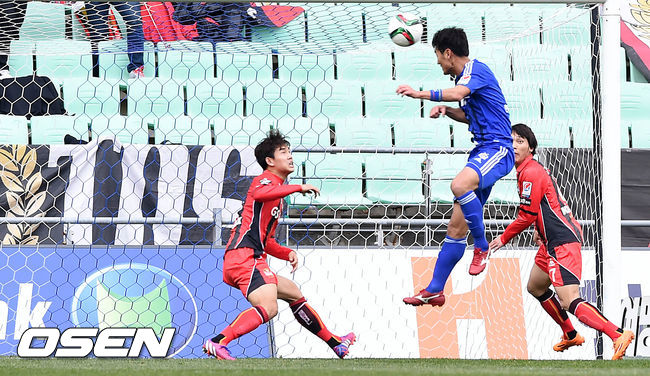 전반 22분 울산 양동현이 헤딩슛을 성공시키고 있다.
