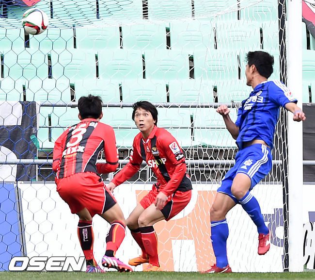 전반 22분 울산 양동현이 선제 헤딩골을 성공시키고 있다.
