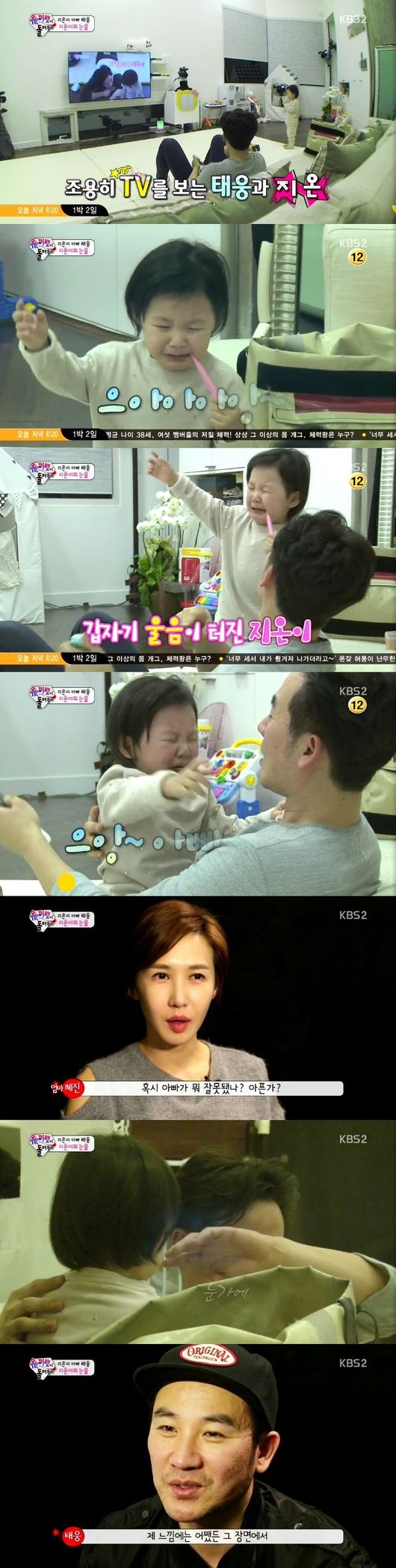 이에 엄마 윤혜진은 "또 자는 장면이 나오니 우는 거다. 아빠가 잘못됐나, 아픈가 그렇게 생각하는 거 같다"고 설명했고 엄태웅은 딸의 모습에 눈시울을 붉히며 "벌써 그런 생각을 할 수 있나 싶을 정도로. 신기하고 예쁘고 나중에 얼마나 효녀가 되려고 그러는 걸까"라고 말했다.