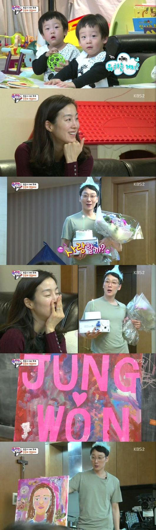 이날 이휘재는 문정원이 아이들과 함께 있는 사이 케이크와 꽃다발을 들고 아내 앞에 섰다. "생일축하합니다"라고 노래를 부른 그는 노랫말에 "사랑할게 문정원 씨"라는 가사를 넣어 아내에게 감동을 줬고, 서언-서준과 함께 만든 그림을 선물헀다.