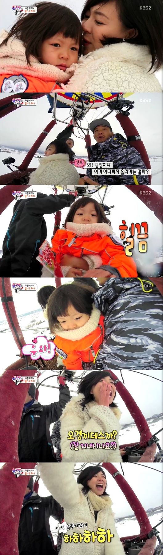 추사랑 가족은 8일 오후 방송된 KBS 2TV 예능프로그램 '해피선데이-슈퍼맨이 돌아왔다'(이하 '슈퍼맨')에서 홋카이도 설원을 나는 열기구를 탔다.