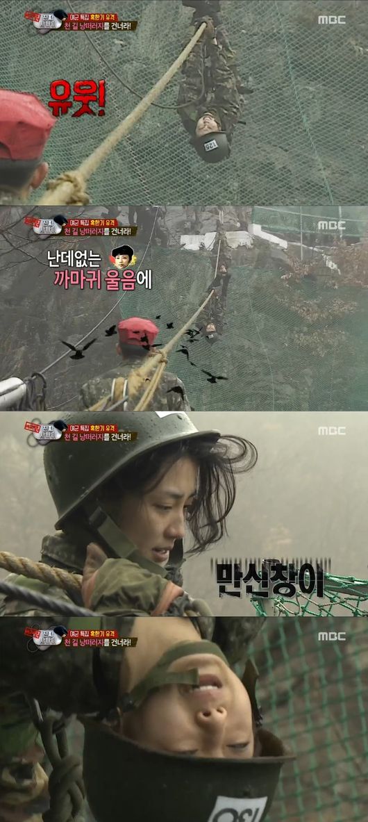 ‘진짜사나이’ 박하선과 이지애가 고소공포증에 까마귀 소리를 내며 복창했다.