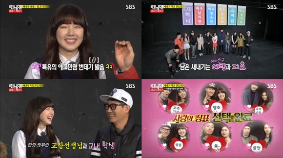 이날 '런닝맨'에는 걸그룹 EXID 하니, 여자친구 예린, 배우 정소민, 윤소희, 남지현이 출연해 커플 레이스를 펼쳤다.