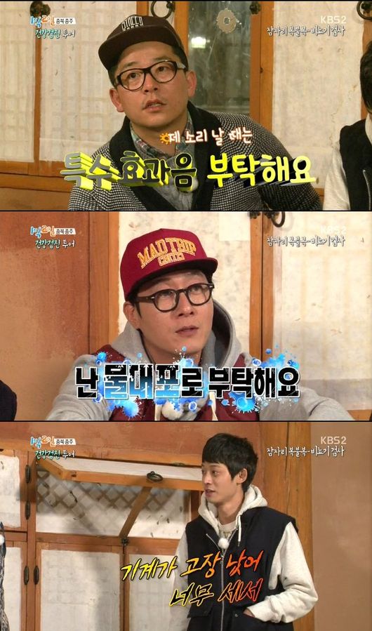 한편 이날 '1박2일'에서는 지난주에 이어 신년 건강검진에 나선 멤버들의 모습이 그려졌다.