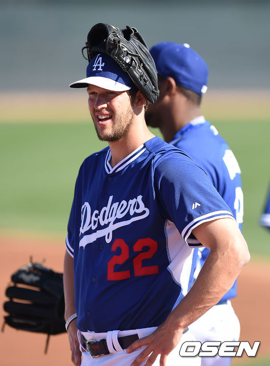 경기에 앞서 진행된 훈련에서 커쇼가 휴식을 취하고 있다.