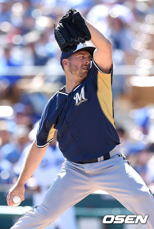 밀워키 브랜든 킨츨러가 역투하고 있다.