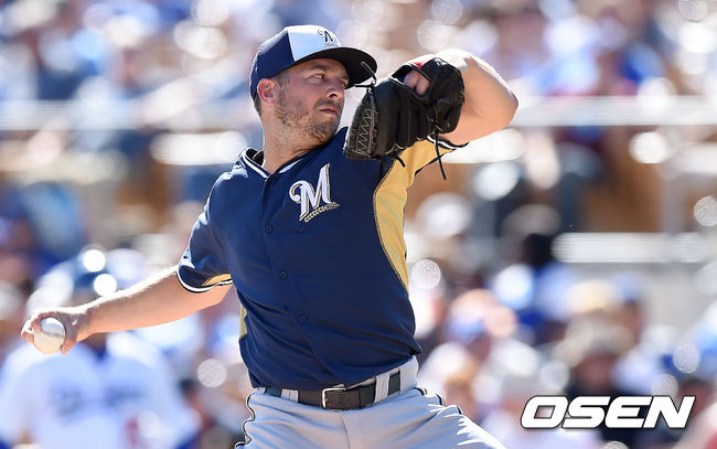 밀워키 브랜든 킨츨러가 역투하고 있다.