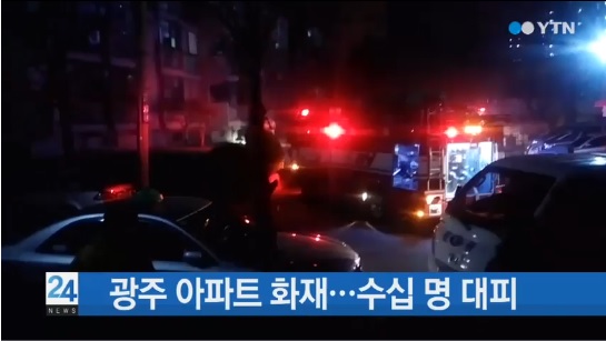[OSEN=이슈팀] 광주의 아파트에서 화재가 발생해 아파트 주민들이 대피하는 소동이 벌어졌다.