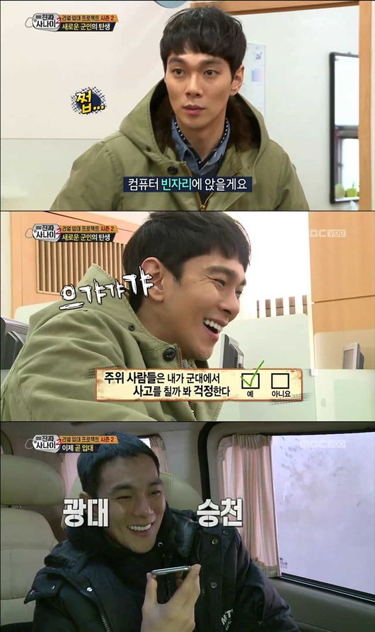 신분증을 가지고 오지 않아 왕복 1시간 거리를 다녀오고, 심리 검사를 받던 중 심하게 몰입하며 진지한 표정을 지은 것부터 웃겼다. ‘아무리 생각해도 내 팔자는 사납다’라는 문항에 “군대 두 번 가면 사나운 거다”라고 정의 내리고, ‘누군가 최면을 건다고 생각한다’라는 문항에 “지금 이 순간이 그렇다”라고 엉뚱한 매력을 드러냈다. 샘 오취리의 인사에 “빨리 풀어”라고 수능 시험을 보듯 진지하게 문항을 써내려가서 시청자들을 웃겼다.
