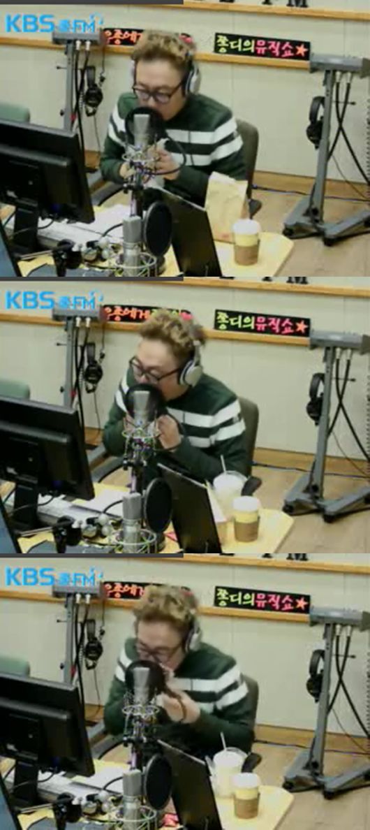 '라디오쇼'의 박명수가 생방송 도중 햄버거 먹방을 선보였다.
