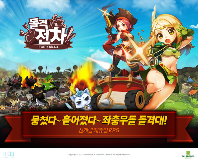 네시삼십삼분(이하 4:33)은 샐러드볼이 개발한 캐주얼 슈팅 RPG(역할수행게임) '돌격전차'가 카카오 게임하기와 구글플레이 게임 부문에서 인기 1위를 기록했다고 9일 밝혔다.