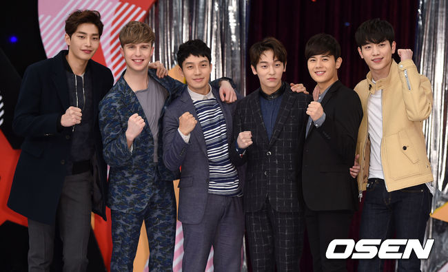 김재영, 쥴리안, 허경환, 엘조, 동준, 서강준이 포토타임을 갖고 있다.