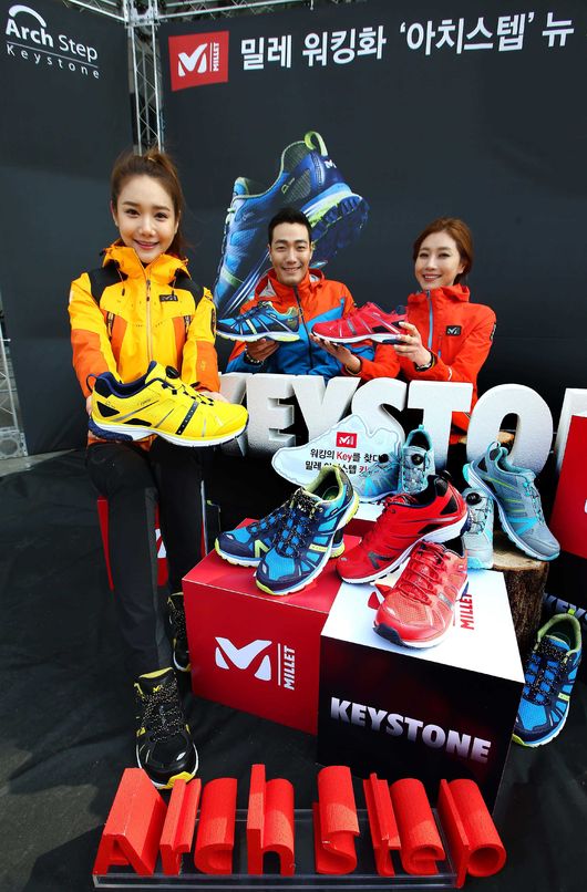 프랑스 정통 아웃도어 브랜드 밀레(㈜MEH, 대표 한철호)가 워킹화 '아치스텝'의 2015년 뉴 라인업인 '키스톤'(Keystone) 시리즈를 발표, 이를 기념해 9일 오전 광화문 청계광장에서는 주요 제품을 선보였다.