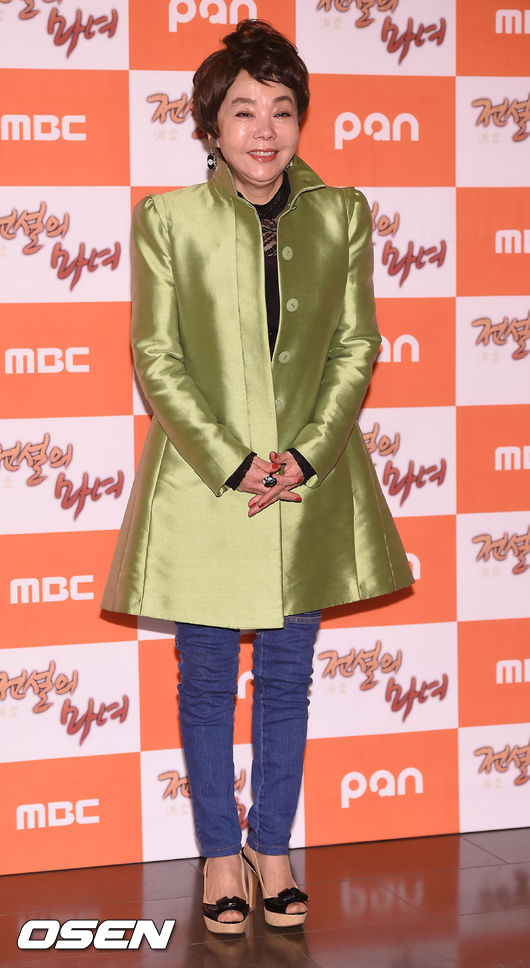 9일 서울 여의도 63빌딩 주니퍼룸에서 진행된 MBC 주말드라마 '전설의 마녀' 종방연에서 배우 김수미가 포즈를 취하고 있다.