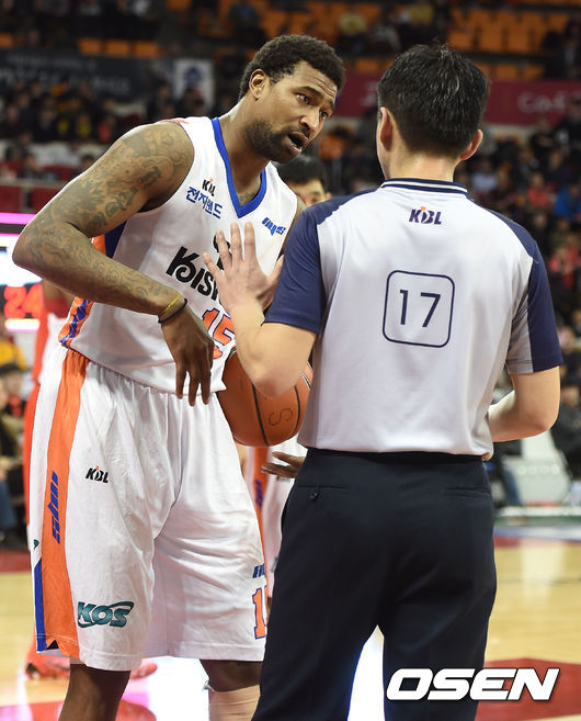 2쿼터, 전자랜드 포웰이 심판판정에 어필하고 있다.