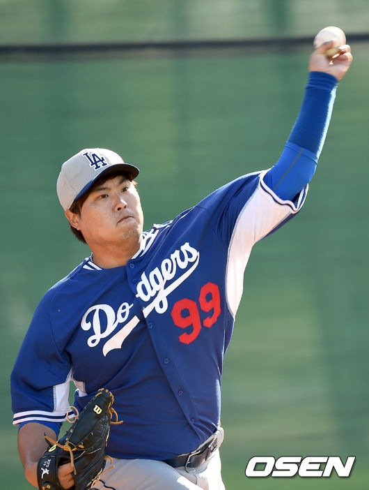 LA 다저스 류현진이 10일(한국시각) 미국 애리조나주 글렌데일 캐멀벡랜치에서 불펜 피칭을 소화했다.