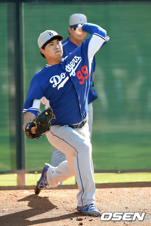 LA 다저스 류현진이 10일(한국시각) 미국 애리조나주 글렌데일 캐멀벡랜치에서 불펜 피칭을 소화했다.