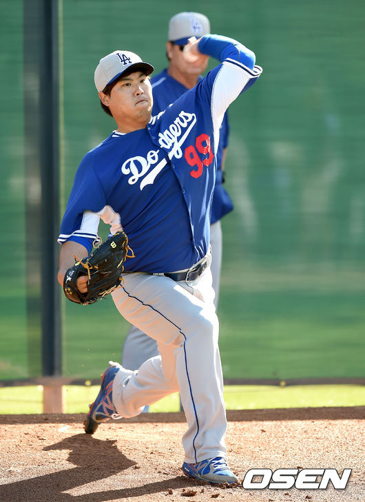 LA 다저스 류현진이 10일(한국시각) 미국 애리조나주 글렌데일 캐멀벡랜치에서 불펜 피칭을 소화했다.