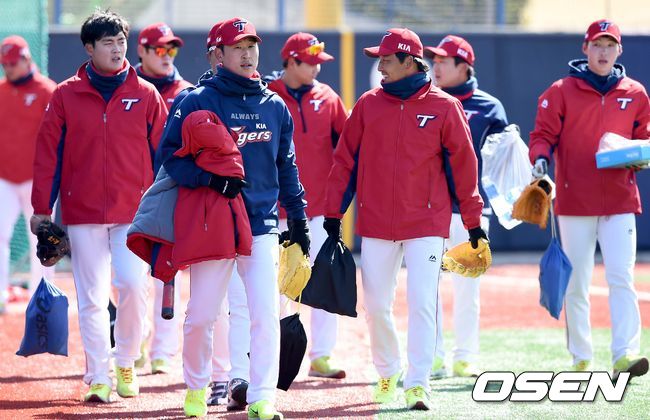 친정 KIA로 돌아온 투수 윤석민을 비롯한 KIA 투수들이 러닝 훈련을 마치고 이동하고 있다./dreamer@osen.co.kr