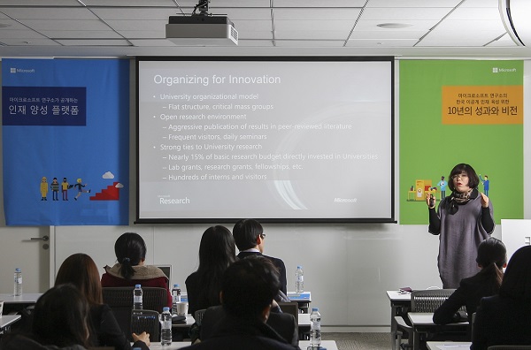 마이크로소프트연구소에서 학술연계 및 지원을 담당해온 이미란 상무는 “마이크로소프트연구소는 ‘사람 중심의 선순환적인 이공계 인재육성’을 정책 철학으로 하고 있다”라며 “대학과 교수에게는 마이크로소프트가 가진 기술과 자원들을 조건 없이 개방해 연구에 집중할 수 있게 하고, 학생들에게는 세계적인 수준의 연구 경험과 세계적인 석학 및 연구원들과 교류 기회를 제공해 함께 커가는 생태계를 마련해주고 있다. 학술연계 성과 및 앞으로의 방향 제시를 통해 국내 이공계 분야가 더욱 발전할 수 있는 계기가 되었으면 한다”고 밝혔다.
