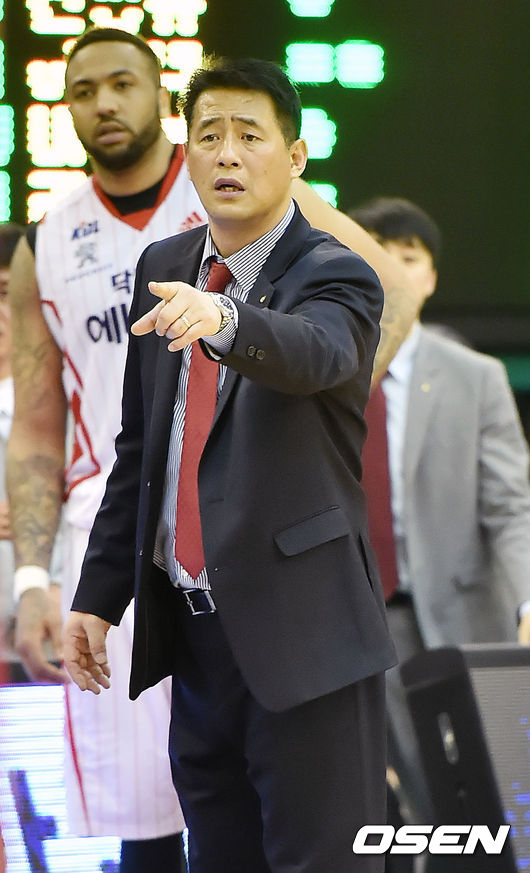 10일 오후 창원 실내체육관에서 열린 '2014-2015 프로농구 플레이오프' 창원 LG와 고양 오리온스의 경기가 열렸다. 4쿼터 오리온스 추일승 감독이 선수들에게 지시를 내리고 있다.