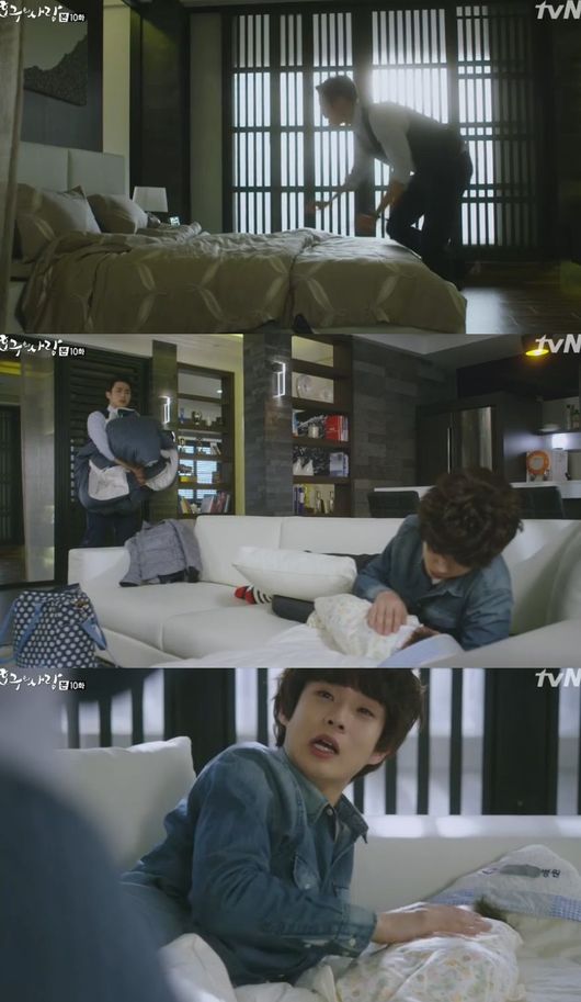 10일 방송된 tvN '호구의 사랑'에서는 도희(유이)의 아기를 데리고 강철(임슬옹)의 집에 가는 호구(최우식)의 모습이 그려졌다. 유이를 찾아온 기자를 따돌리기 위해 호구와 강철은 아기를 데리고 강철의 집으로 온다.