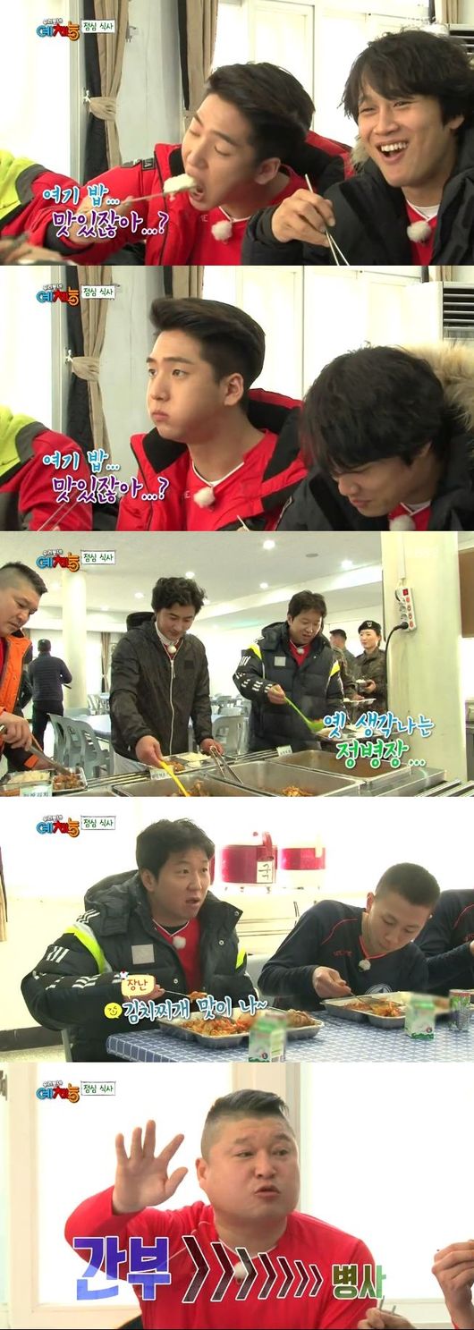 더불어 정형돈 역시 "얼마만에 먹어보는 군대 밥인지 모르겠다. 김치찌개 맛이 난다"고 말해 웃음을 자아냈다.