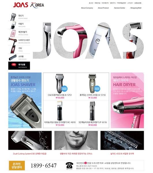 조아스 전용 쇼핑몰(www.joaskorea.co.kr)에서는 대표 제품군인 전기면도기와 전기이발기를 비롯해 헤어드라이기와 기타 소모품까지 다양한 생활 가전 제품을 바로 구입할 수 있다. 무엇보다도 구매 이전 단계에서 생길 수 있는 문의사항에 대해 직통 상담센터(1899-6547)를 운영해 소비자가 충분한 정보를 가지고 제품을 선택할 수 있는 것이 가장 큰 장점이다.