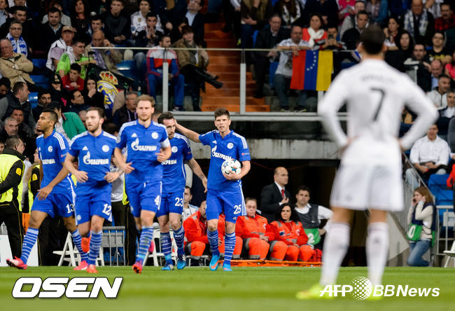 레알 마드리드는 11일(한국시간) 스페인 마드리드 베르나베우에서 열린 2014-2015 유럽축구연맹(UEFA) 챔피언스리그 16강 2차전서 샬케04에 3-4로 패했다. 그러나 1차전서 2-0의 완승을 챙겼던 레알 마드리드는 합계 5-4로 힘겨운 접전 끝에 8강에 올랐다.