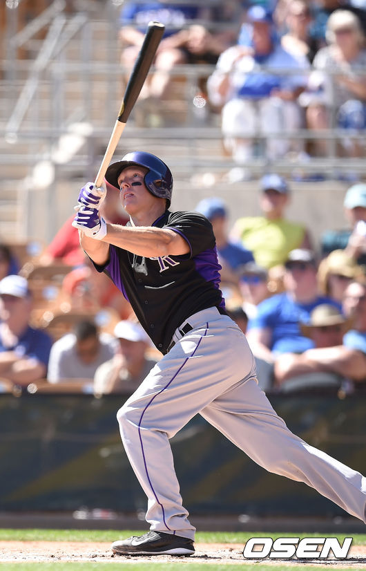 3회초 무사 콜로라도 닉 헌들리가 솔로 홈런을 때리고 있다.