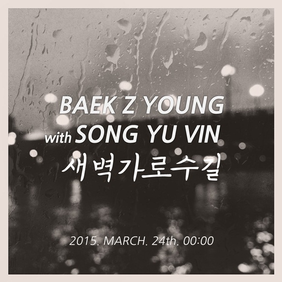 이날 공개된 티저 이미지에는 '백지영 with 송유빈'이라는 텍스트와 함께 신곡 제목인 ‘새벽 가로수길’과 발매 날짜인 '2015년 3월 24일'이 적혀있다.