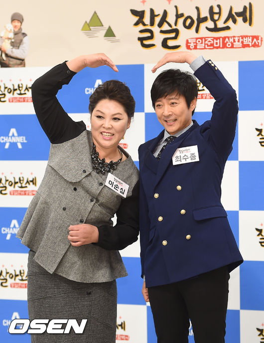 11일 오전 서울 채널A 상암동 DDMC 동아디지털미디어센터 4층 중형 스튜디오에서 진행된 채널A '잘 살아보세' 제작발표회에서 이순실과 최수종이 포토타임을 하고 있다.