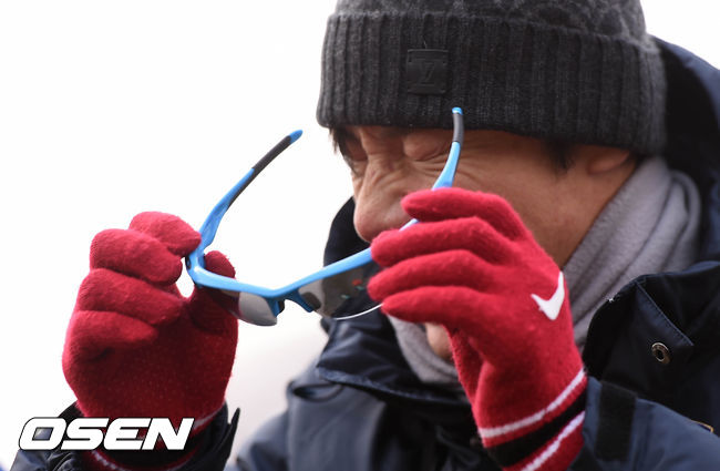 경기종료후 신태용 감독이 인터뷰를 위해 준비하고 있다.