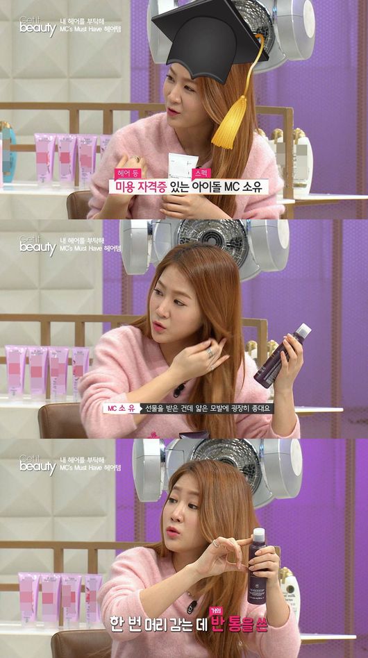 온스타일 ‘겟잇뷰티’ MC 소유가 헤어 자격증을 보유한 실력자답게 남다른 헤어 홈케어 비법을 전한다.