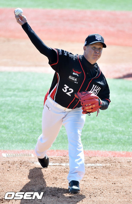 kt 위즈 외국인 투수 크리스 옥스프링(38)이 첫 등판에서 1이닝을 투구하고 경기를 마쳤다.