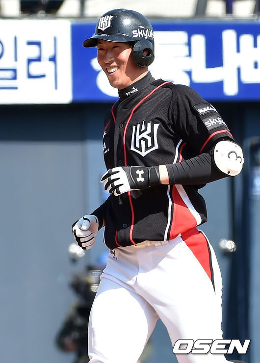 11일 오후 경상남도 창원시 마산야구장서 ‘2015 타이어뱅크 KBO 리그’ 시범경기 NC 다이노스와 kt 위즈의 경기가 열렸다. 4회초 kt 김사연이 좌월 선취 솔로포를 날린 후 그라운드를 돌며 미소짓고 있다.