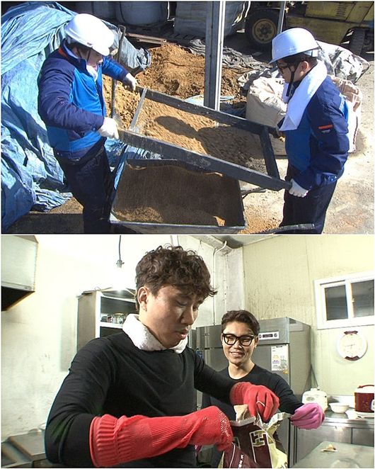 사진 속 두 사람은 채에 흙을 걸러내는 작업에 몰두 중이다. 이는 마치 사랑의 박타기를 하는 듯한 분위기를 자아내 웃음을 유발하고 있다. 실제 촬영장에서도 동갑내기인 둘은 껌딱지처럼 함께 다니며 훈훈한 케미를 자랑했다고. 특히 정태호는 다리를 다친 김범수를 위해 궂은 일 등을 도맡아 해 진한 우정을 입증케 했다는 후문이다.