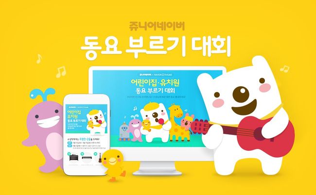 3월에 진행되는 쥬니버 ‘동요 부르기 대회’는 전국의 유치원과 어린이집을 대상으로 하는 동요 대회로, 오는 31일까지 쥬니버와 네이버TV캐스트 페이지에서 진행된다. 수상작은 이용자들로부터 ‘좋아요’를 가장 많이 받은 순위로 결정된다. 쥬니버는 이번 대회를 시작으로 율동 동요 대회, 악기와 함께하는 동요 대회, 가족과 함께하는 동요 대회 등 다양한 주제의 동요 대회를 마련해나갈 예정이다.