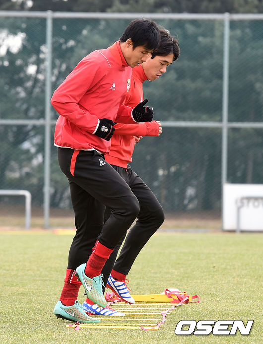 정조국, 박주영이 훈련을 소화하고 있다.