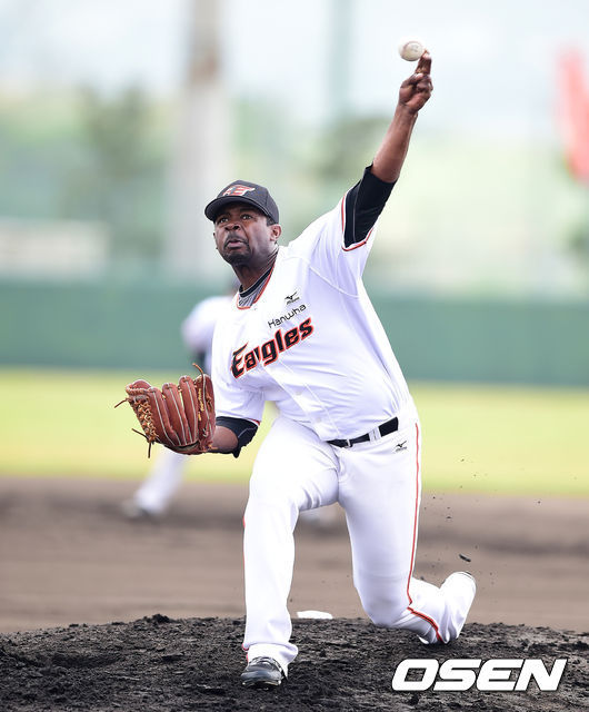 한화 외국인 투수 쉐인 유먼이 시범경기 첫 등판에서 뭇매를 맞았다. 롯데 시절에 이어 한화에서도 시범경기 부진을 반복했다.