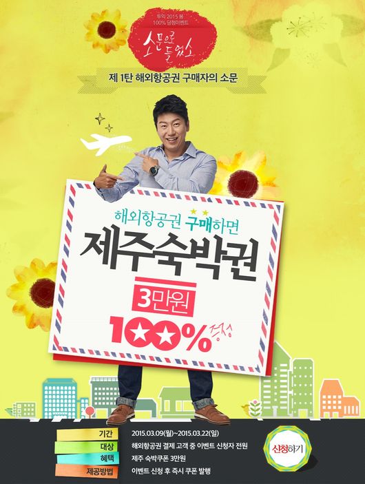 해외항공권을 구매하면 제주숙박권을 100% 받을 수 있는 이벤트가 열린다.