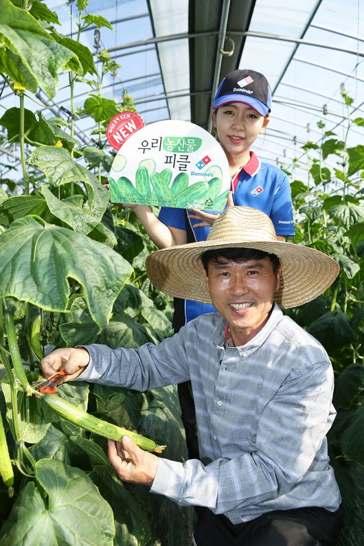 세계 최대 피자배달 전문 기업 도미노피자(대표 오광현, www.dominos.co.kr)가 영농조합법인 ㈜도담과 오이 공급을 위한 업무협약(MOU)을 체결하고 국내 농가에서 키운 백오이로 만든 '우리 농산물 피클'을 출시했다고 11일 밝혔다.
