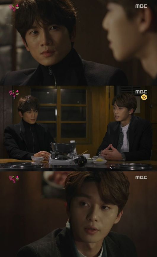 11일 오후 방송된 MBC 수목드라마 '킬미힐미'(극본 진수완, 연출 김진만 김대진) 19회에서 오리온(박서준 분)은 오리진(황정음 분)을 차도현(지성 분)의 집에 데려다주고, 도현과 단 둘이 술잔을 기울인다.