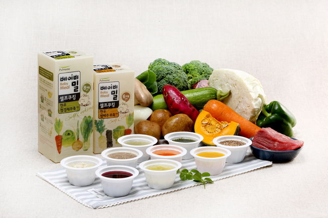 풀무원 베이비밀 '셀프쿠킹'은 생후 6개월부터 먹을 수 있는 중기 이유식 3종과 8개월부터 먹을 수 있는 이유식 4종으로, 불린 쌀에 셀프쿠킹 재료와 물을 넣어 끓이면 한번 조리시 3끼 분량의 이유식을 만들 수 있다.
