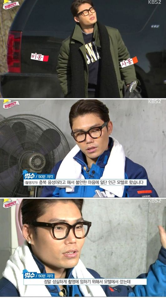 50분이나 지각한 김범수는 "일찍 올려고 전날 근처 모텔에서 잤다. 그런데 잠깐 30분 잠들었는데 지각을 했다"고 말했다.